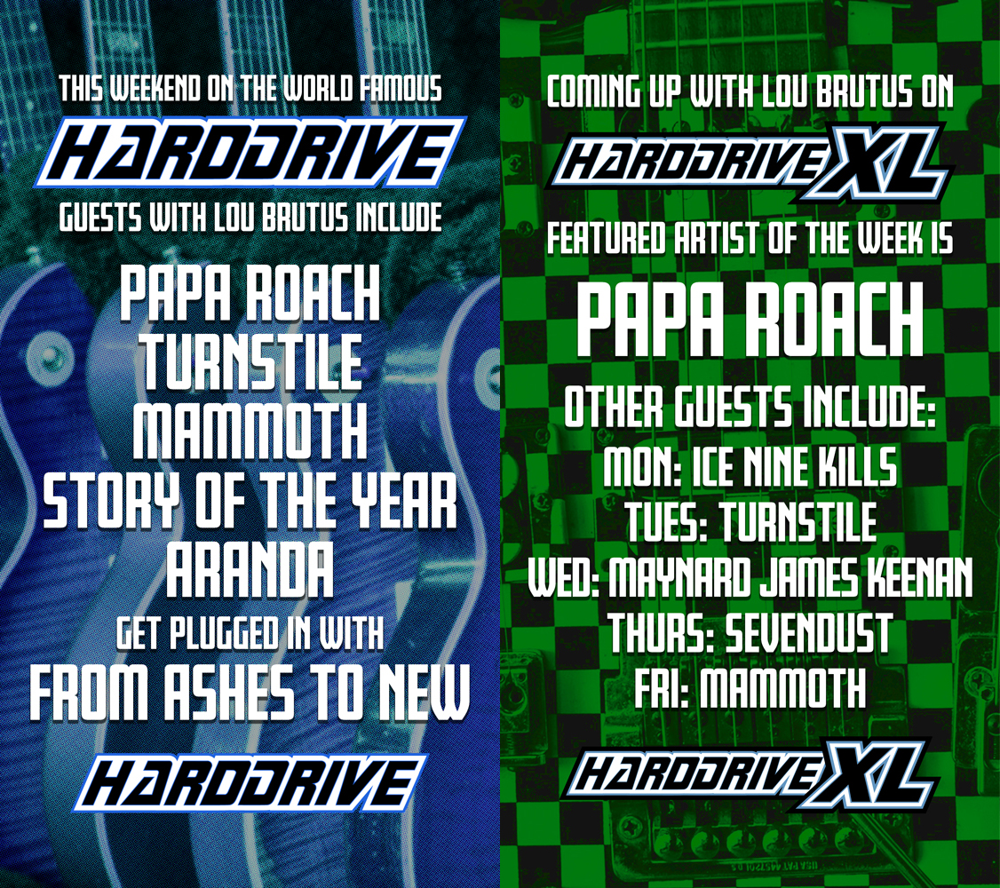 Then on Monday March 02, Jacoby Shaddix of Papa Roach will join us each night as Featured Artist of the Week on HardDrive XL. Our other Special Guests will include Ice Nine Kills, Turnstile, Maynard James Keenan, Sevendust, and Mammoth.